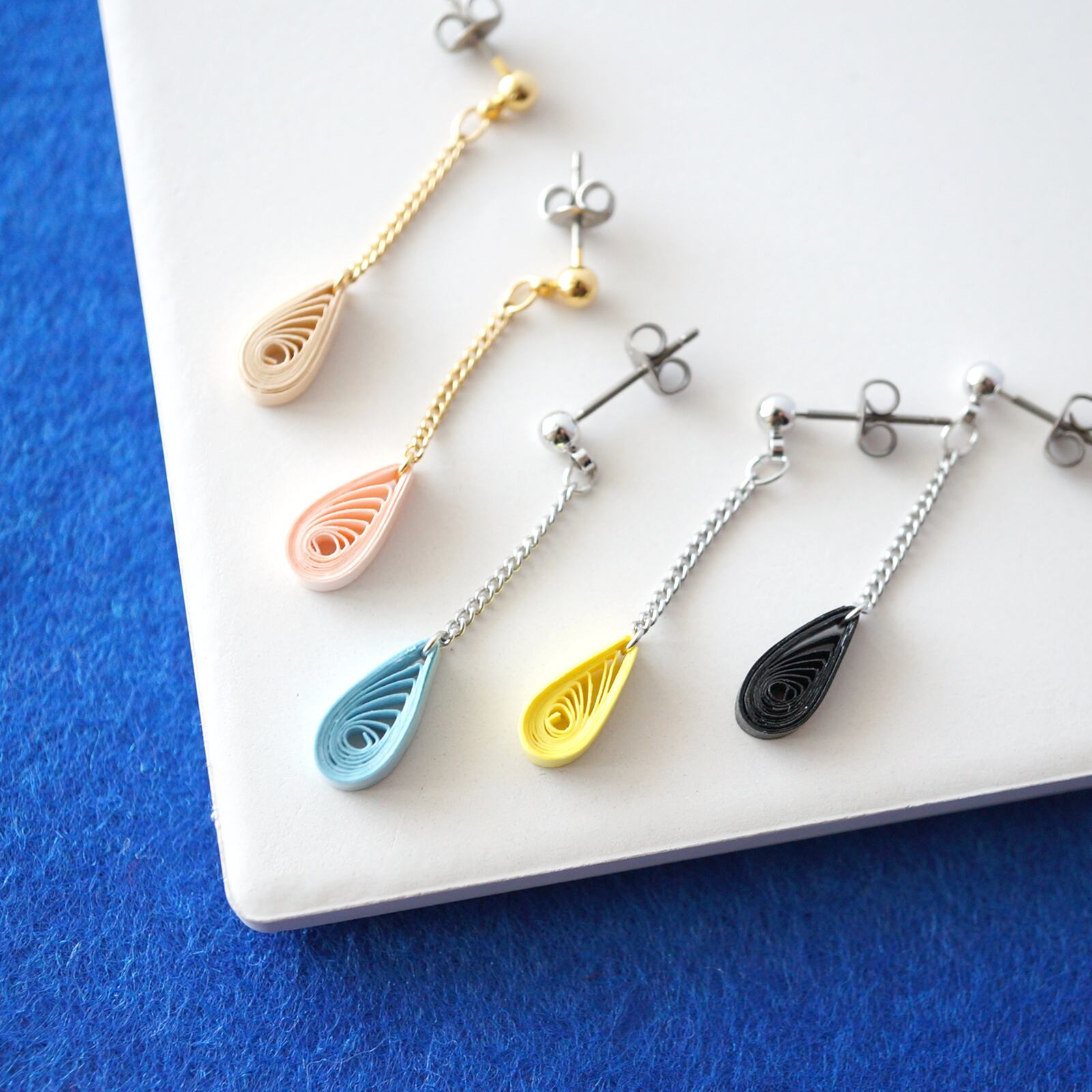 全16色パーソナルカラー『シンプルドロップ』イヤリング・ピアス, 軽くて耳に優しい紙製ペーパーアートアクセサリー