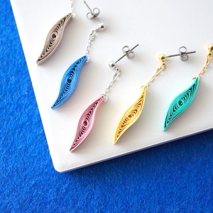 パーソナルカラー別『シングルウェーブライン』イヤリング・ピアス, 軽くて耳に優しい紙製ペーパーアートアクセサリー