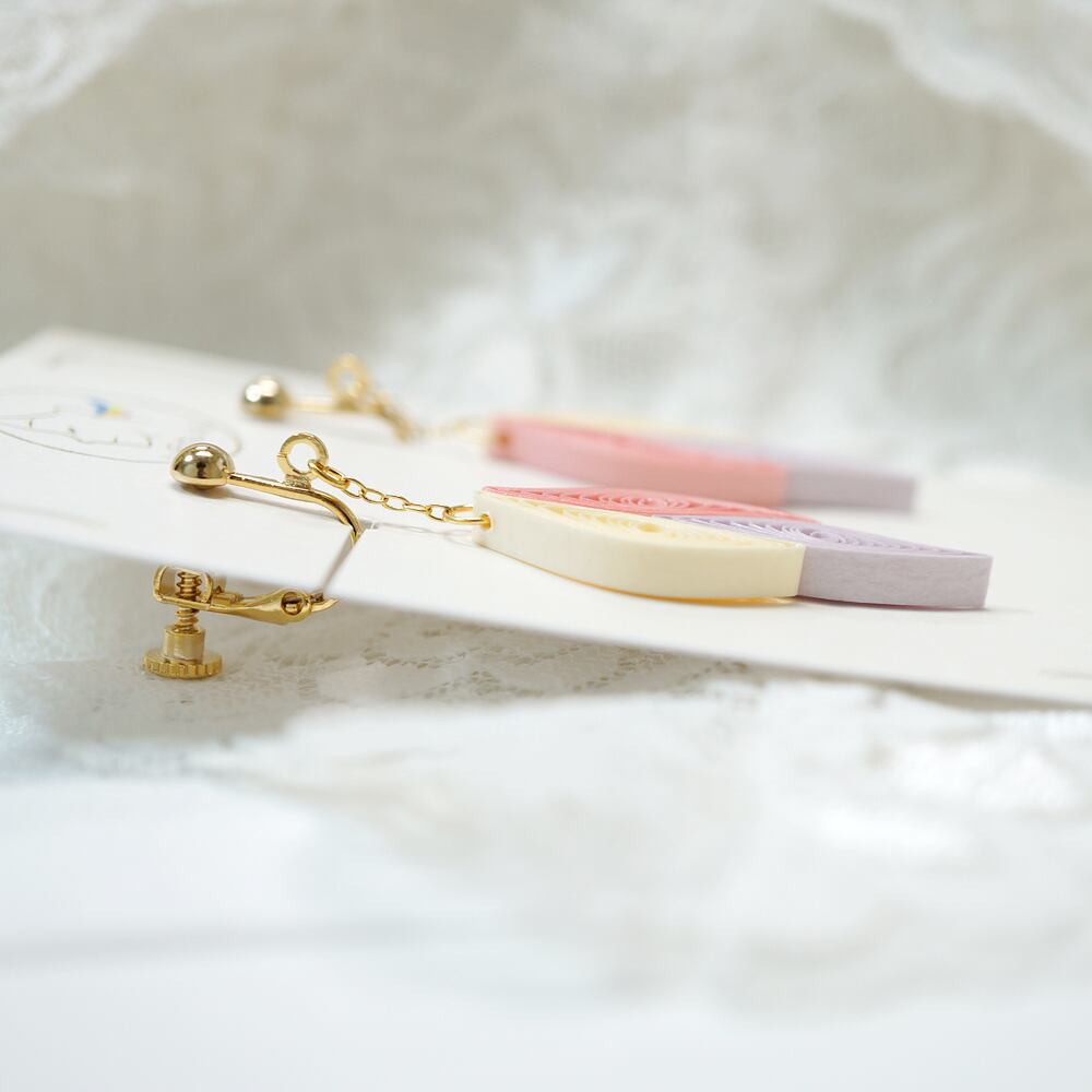 フォックステイルイヤリング・ピアス[ロマンティックカラー] , 軽くて耳に優しい紙製ペーパーアートアクセサリー