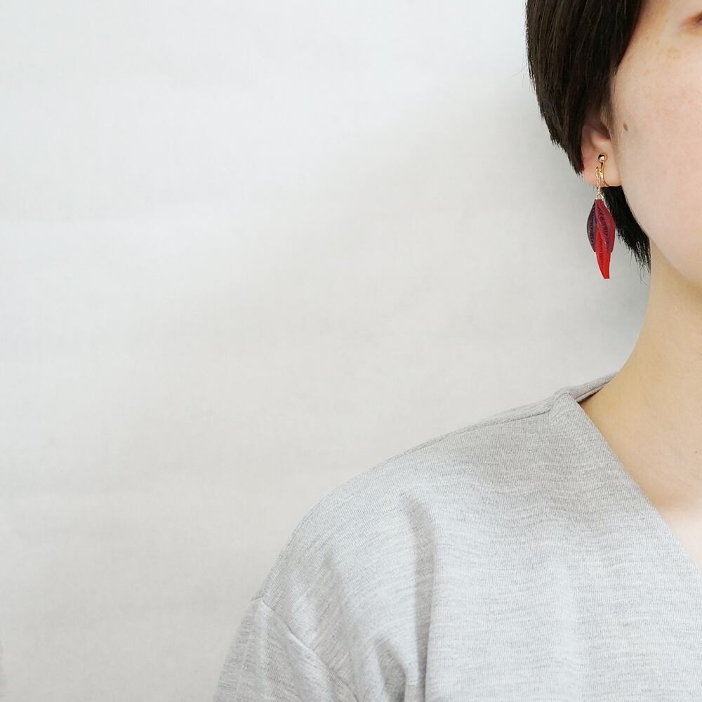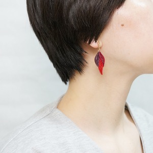 フォックステイルイヤリング・ピアス[レッド] , 軽くて耳に優しい紙製ペーパーアートアクセサリー