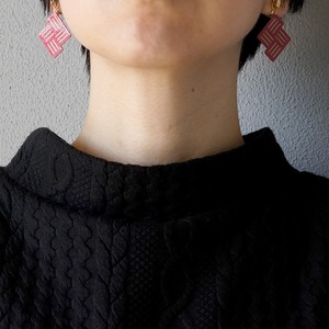 リバーシブル2Wayイヤリング・ピアス『Stitch』Wine&Beige, 軽くて耳に優しい紙製ペーパーアートアクセサリー